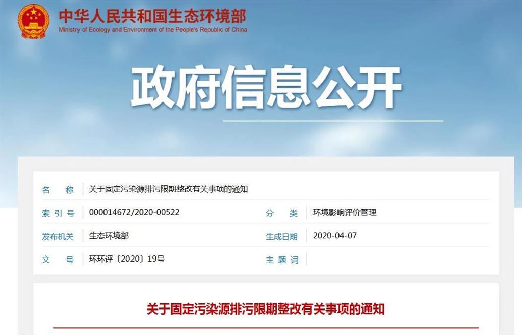 生態環境部辦公廳2020年4月7日印發