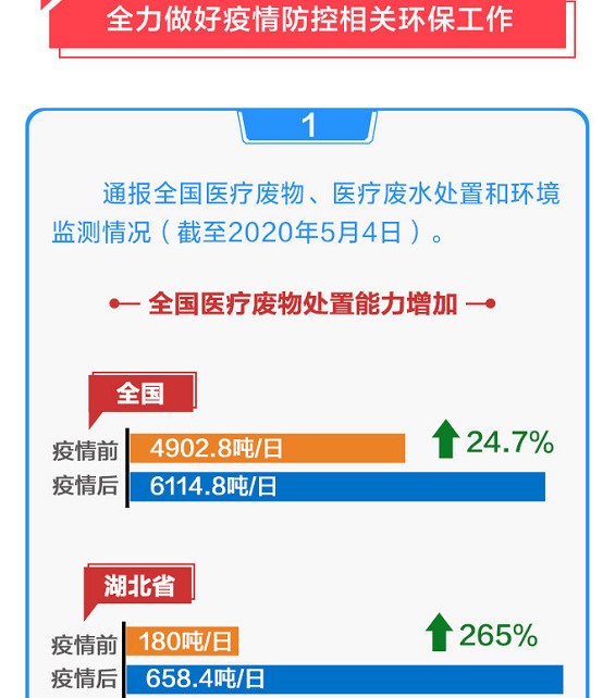 生態環境部官方微博發布《一圖讀懂:生態環境部4月重點工作進展》,涉及截止到5月4日的_醫療廢物、醫療廢水處置和環境監測情況,如下圖所示: