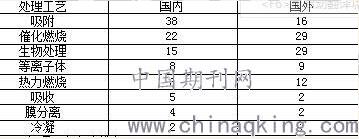 表1 國內外印刷廢氣治理技術占比,%