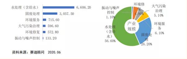 圖 2 2019 年全qiu環保產業細分領域分布情況(億美元)
