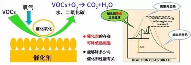 通常VOCs的自燃燒溫度較高,通過催化劑的活化,可降低VOCs燃燒的活化能,從而降低起燃溫度,減少能耗,節約成本。