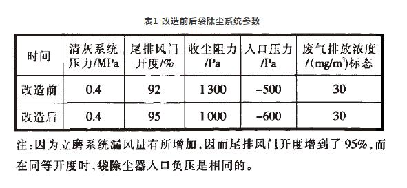 改造后,_解決了以前出現的風路閉死的不正常情況,而且各項運行參數都在正常范圍內。改造后仍用玻纖覆膜濾袋,改造前濾袋使用周期2~2.5年,改造后使用周期能達到2.5~3年,延長了濾袋的使用壽命。改造前每年需更換400條濾袋,改造后1年內共更換230條濾袋,節省了10.2萬元。