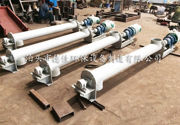 二.水平散裝水泥粉煤灰上料用螺旋輸送機:當物料加入固定的機槽內時,由于物料的重力及其與機槽間的摩擦力作用,堆積在機槽下部的物料不隨螺旋體旋轉,而只在旋轉的螺旋葉片推動下向前移動,如同不旋轉的螺母沿著轉動的螺桿作平移運動一樣,達到輸送物料的目的。該機便于多點裝料與卸料,輸送過程中可同時完成混合.攪拌或冷卻功能。對超載敏感,易堵塞;對物料有破碎損耗,水平散裝水泥粉煤灰上料用螺旋輸送機的結構簡單,便于安裝和維修以及故障處理。適用于水平或微傾斜(20º以下)連續均勻輸送松散物料,工作環境溫度為-20℃-40℃,輸送物料溫度為-20℃-80℃。其轉速相對于垂直輸送機要低,主要用于水平或小傾角輸送物料,輸送距離一般不大于70米。