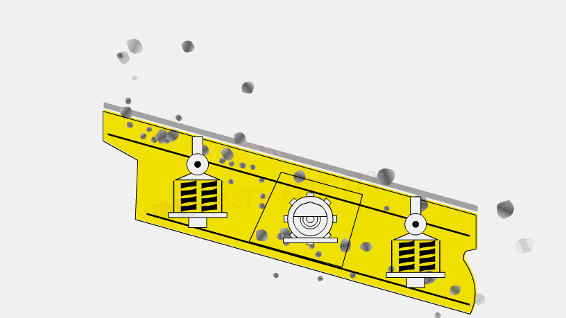 圓振動篩主要由篩箱、篩網、振動器、減振彈簧裝置、底架等組成。篩機側板采用鋼板制作而成,側板與橫梁、激振器底座采用高強度螺栓或環槽鉚釘連接,采用筒體式偏心軸激振器及偏塊調節振幅。振動器安裝在篩箱側板上,并由電動機通過三角皮帶帶動使激振器偏心塊產生高速旋轉,產生很大的離心慣性力,激發篩箱產生一定振幅的圓運動,篩上物料在傾斜的篩面上受到篩箱傳給的沖量而產生連續的拋擲運動,物料與篩面相遇的過程中使小于篩孔的顆粒透篩,從而實現分級。